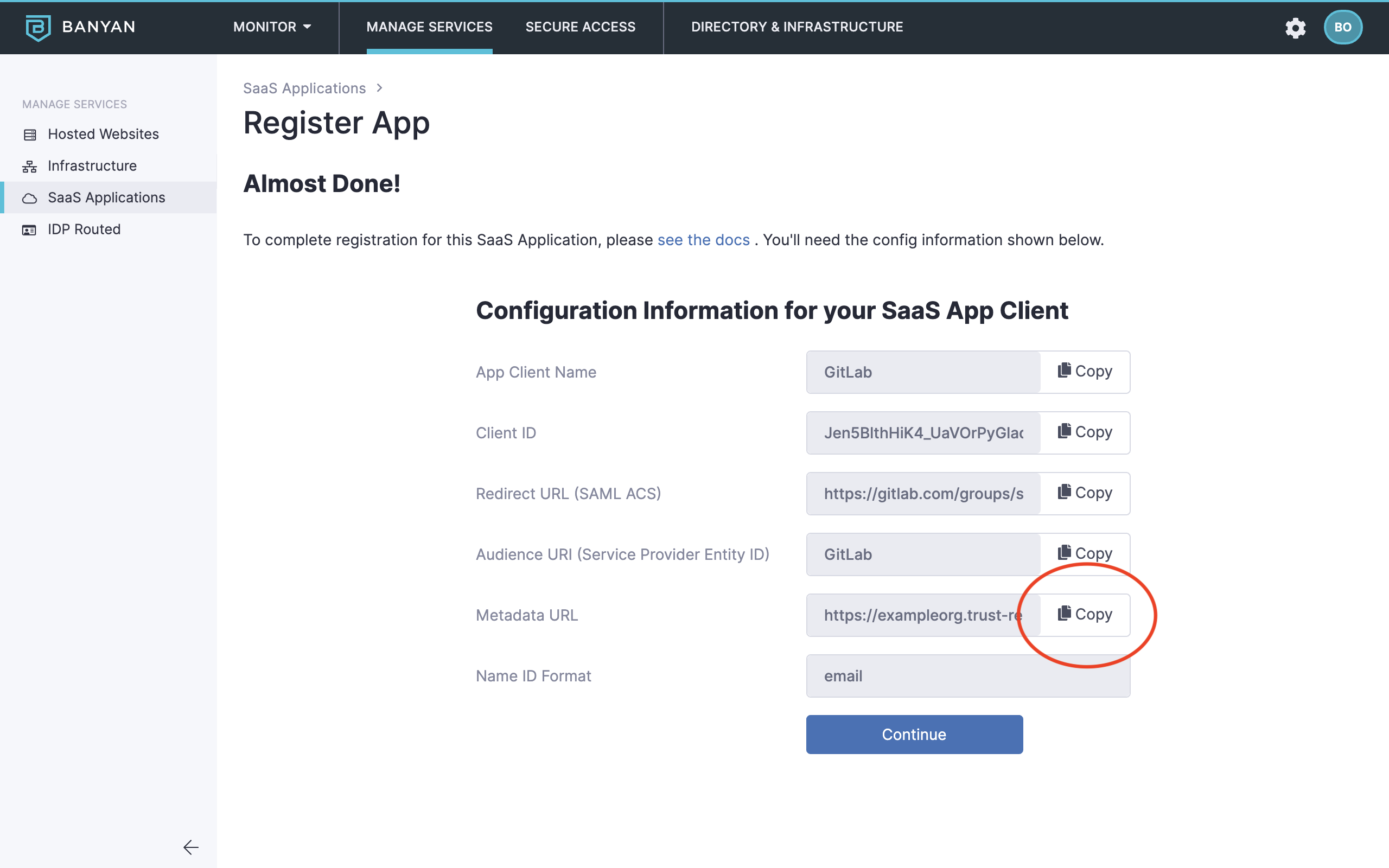 Step 3. Prepare your Banyan-registered App Details for GitLab