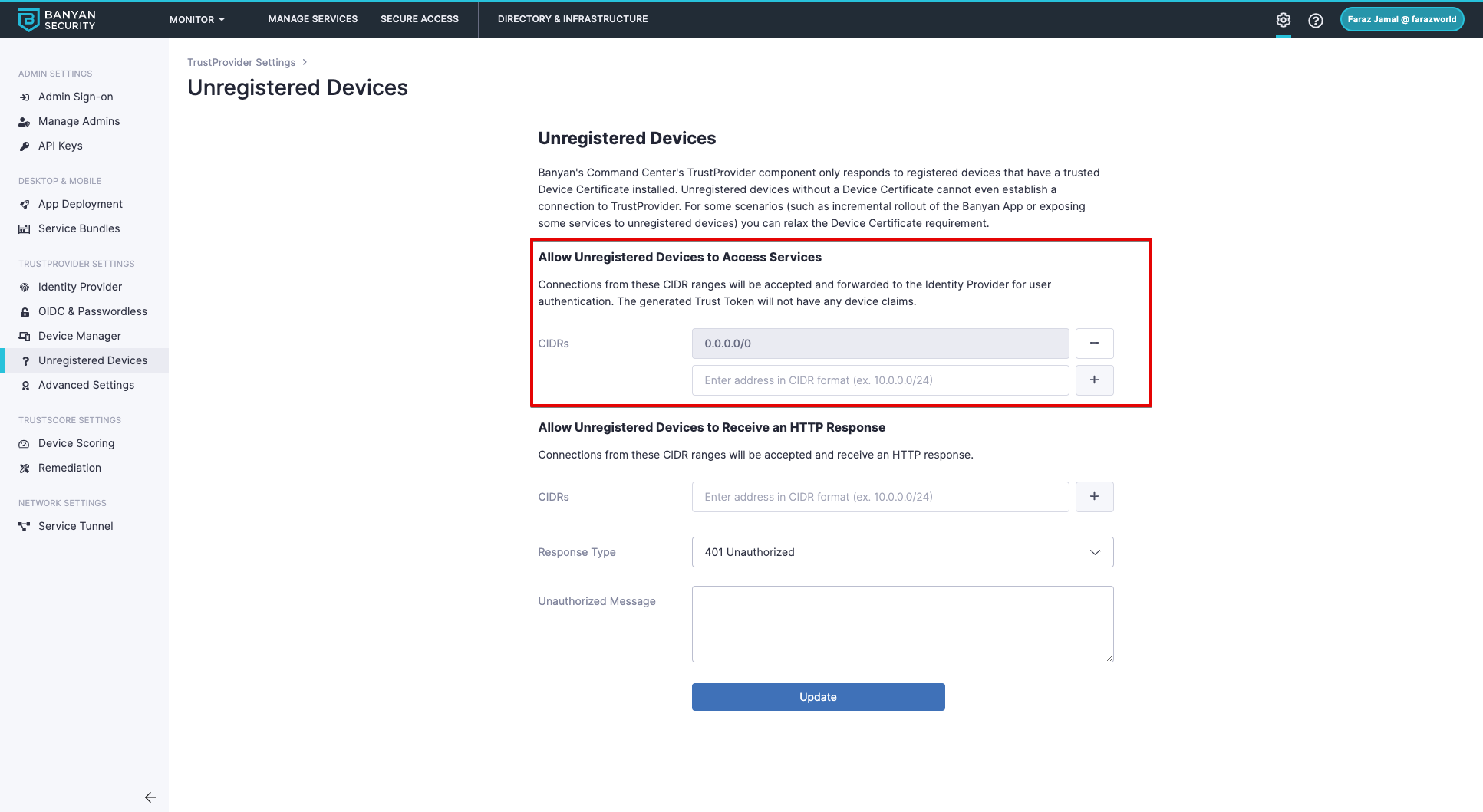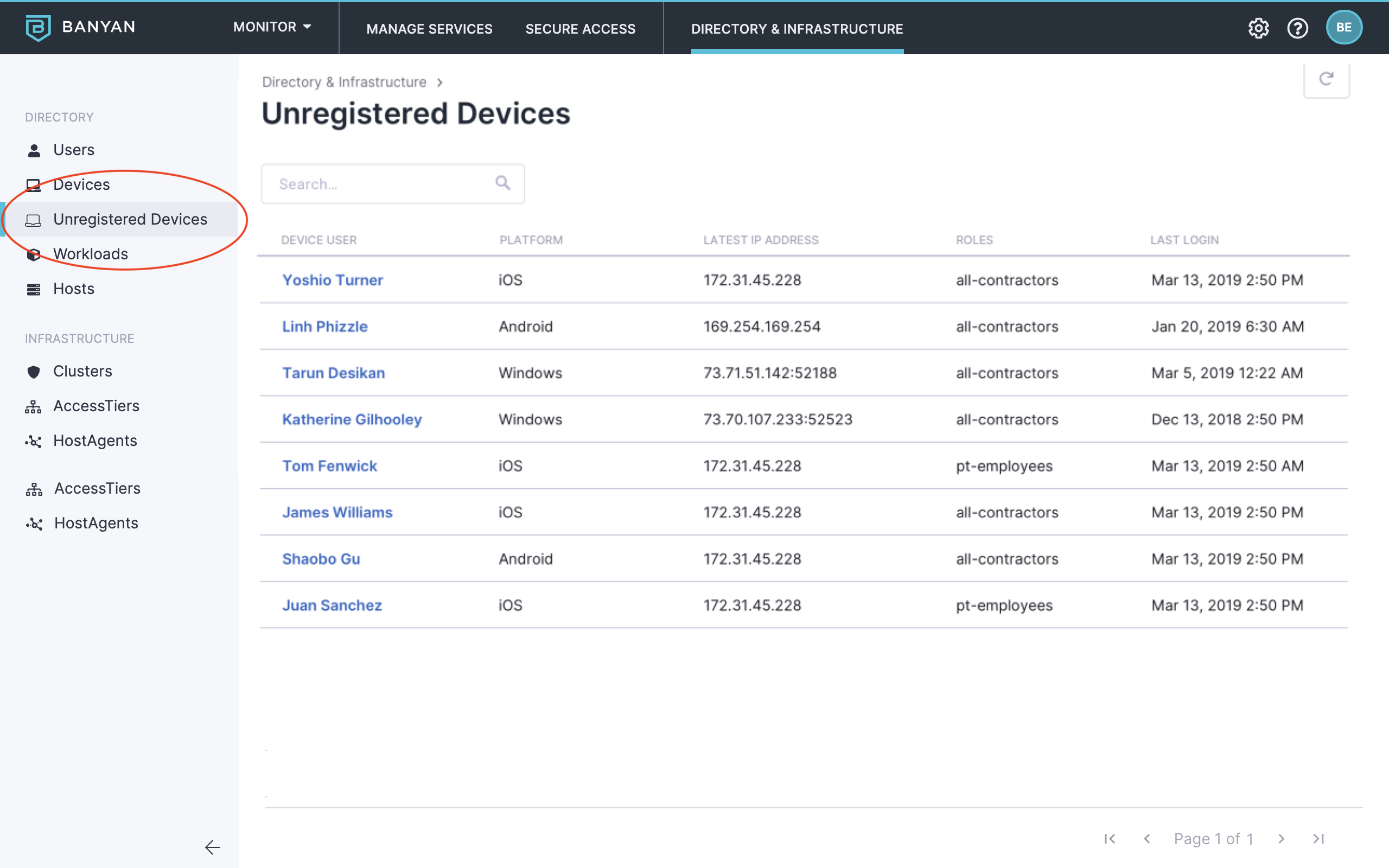 The unregistered device list view will populate with users who are accessing Okta applications from devices that do not have the CSE (formerly Banyan) certificate.