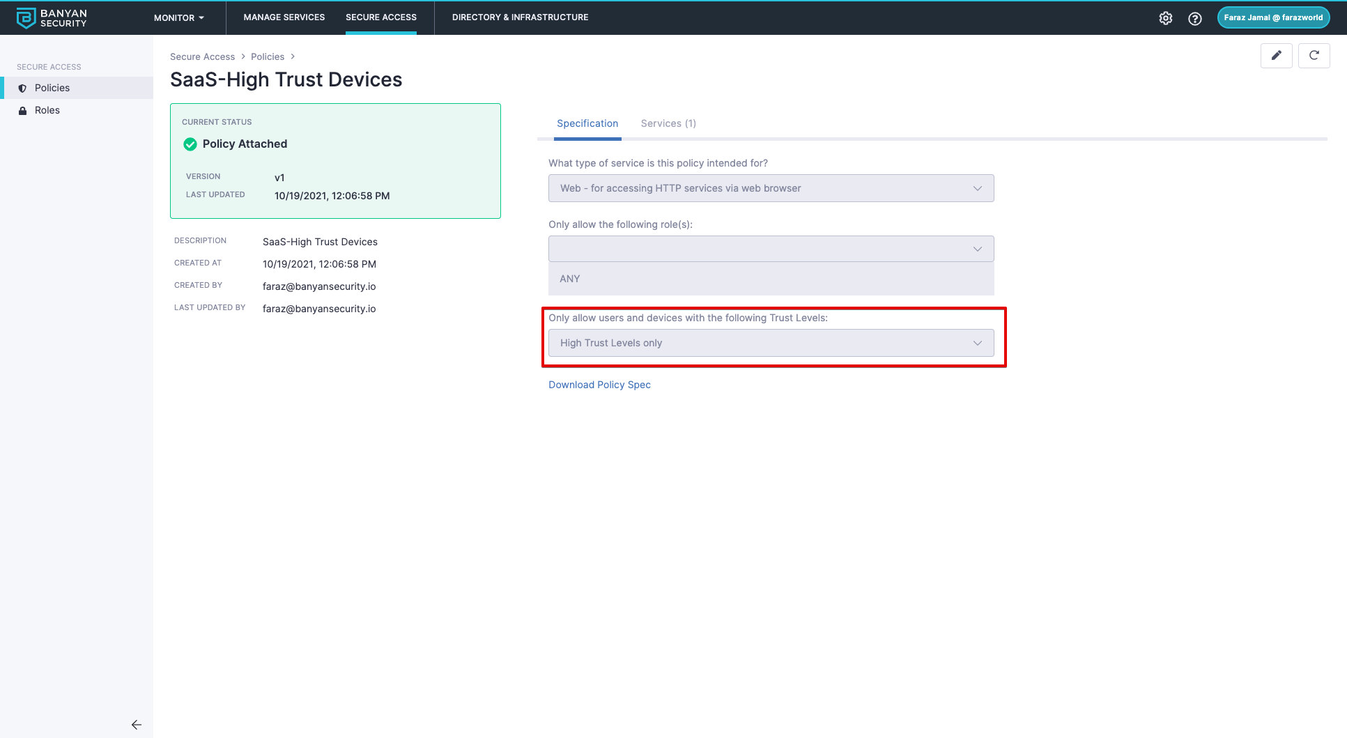 This example shows how to create multiple policies for High Security vs Medium Security applications