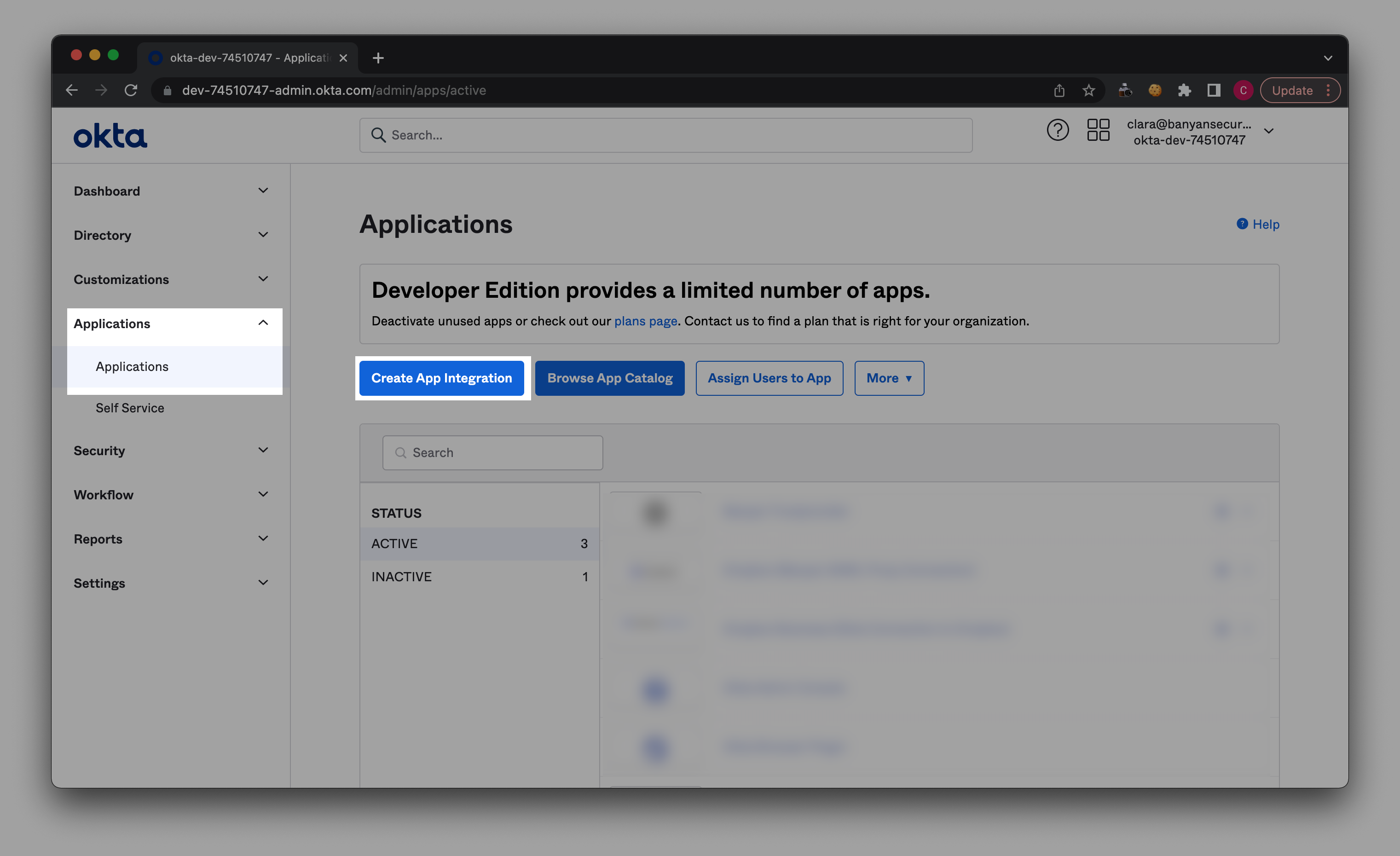 4.1 In Okta, navigate from Applications > Applications.