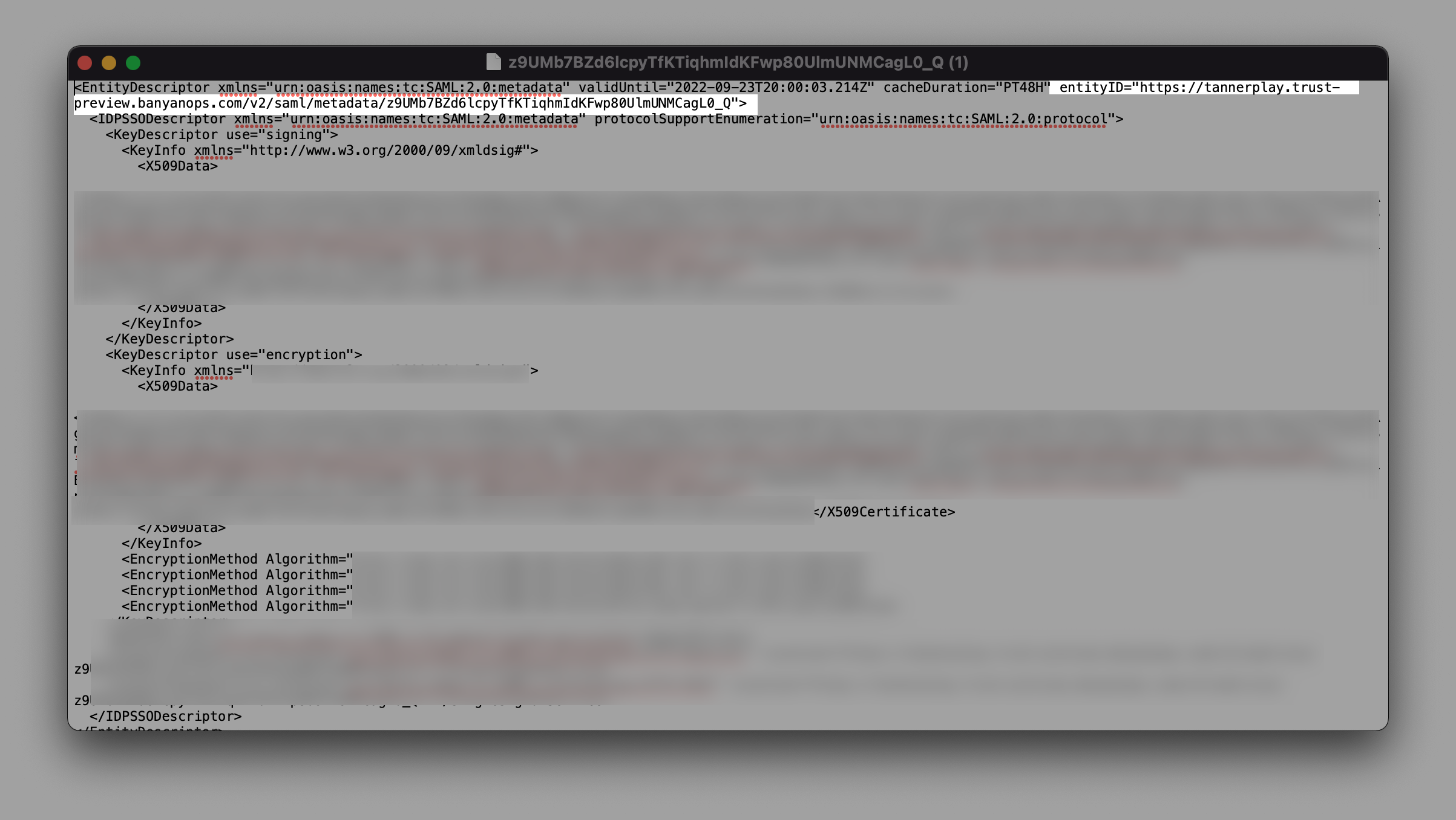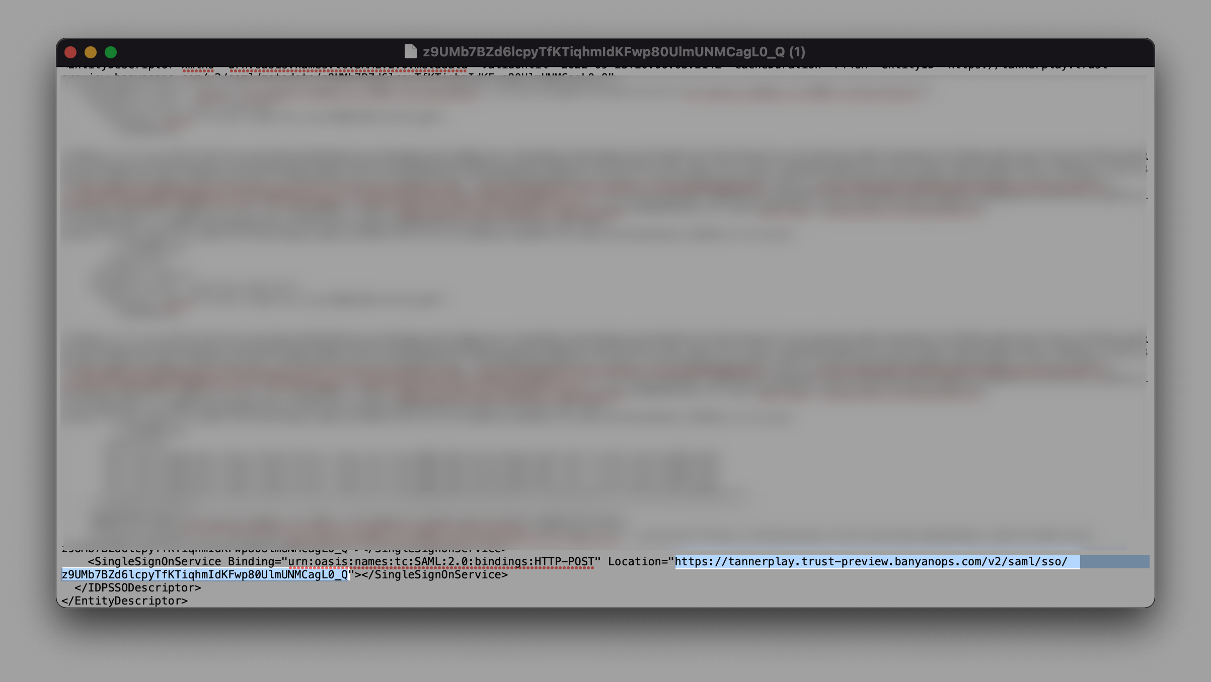Note: Information in this downloaded text file will be used in Step 3 for the SAML configuration.