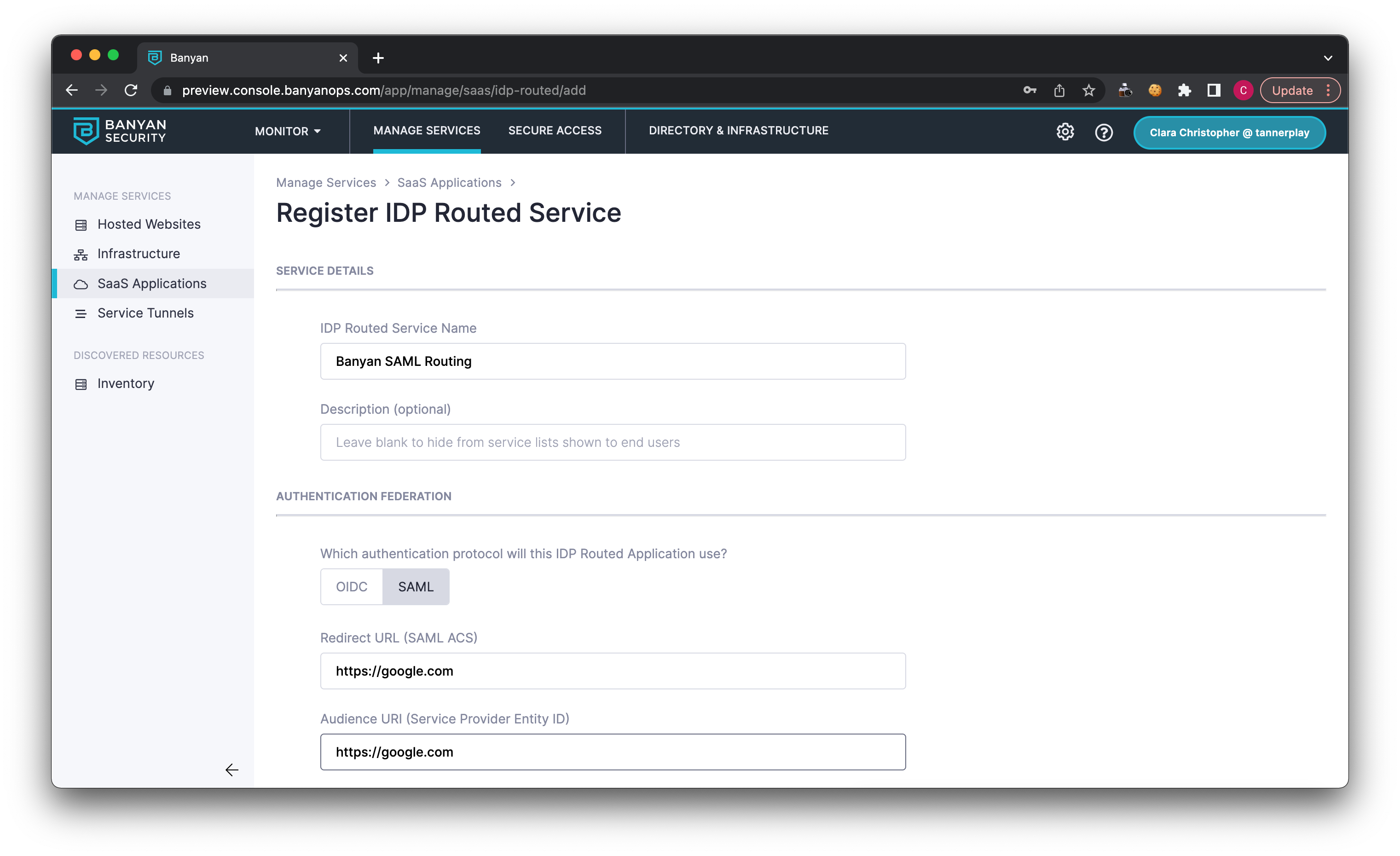 1.3 In the IDP Routed Service Name field, enter your service name (e.g., the name of your app).