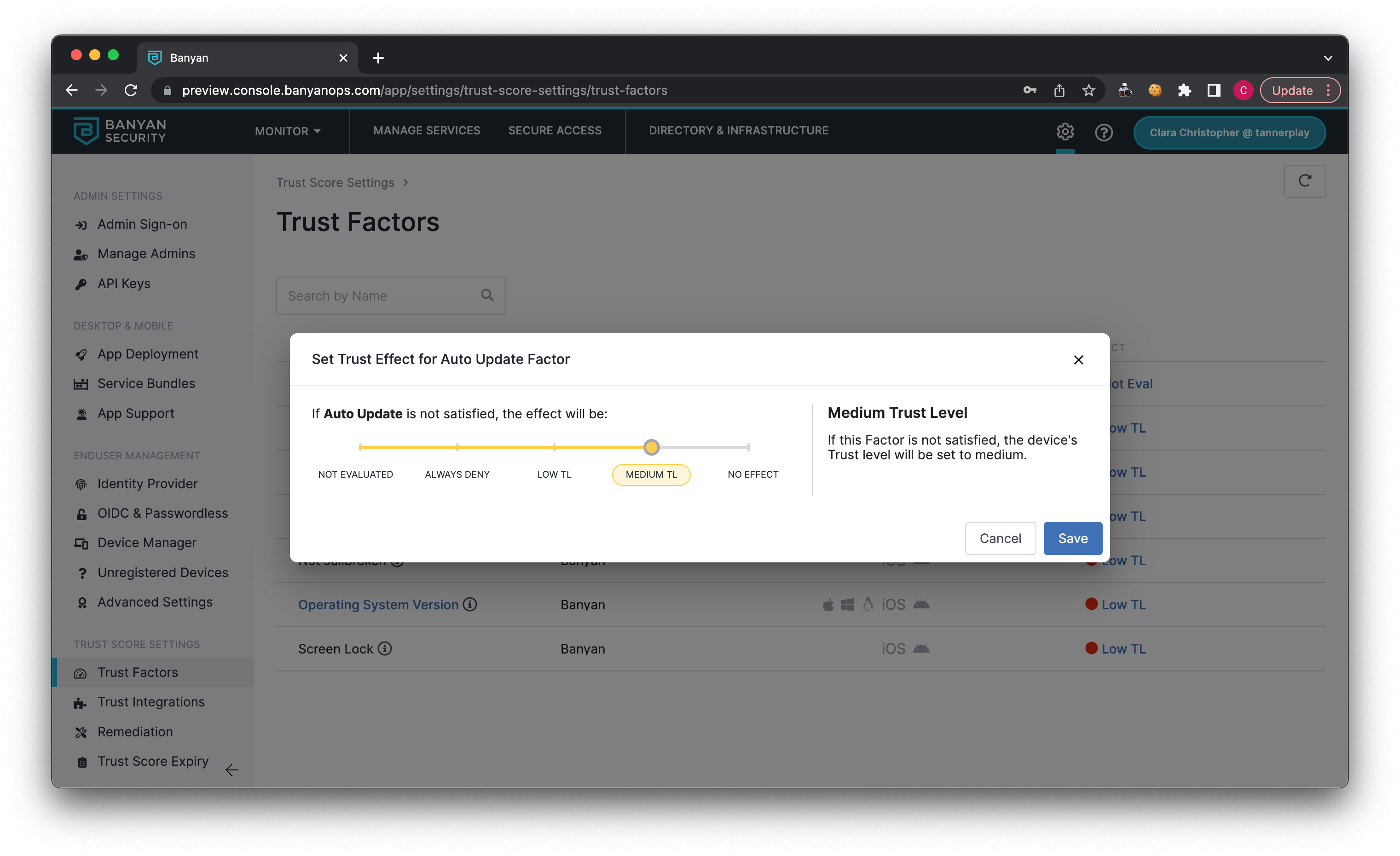Medium Trust Level: If this factor is not satisfied, the device’s Trust level will be set to medium.
