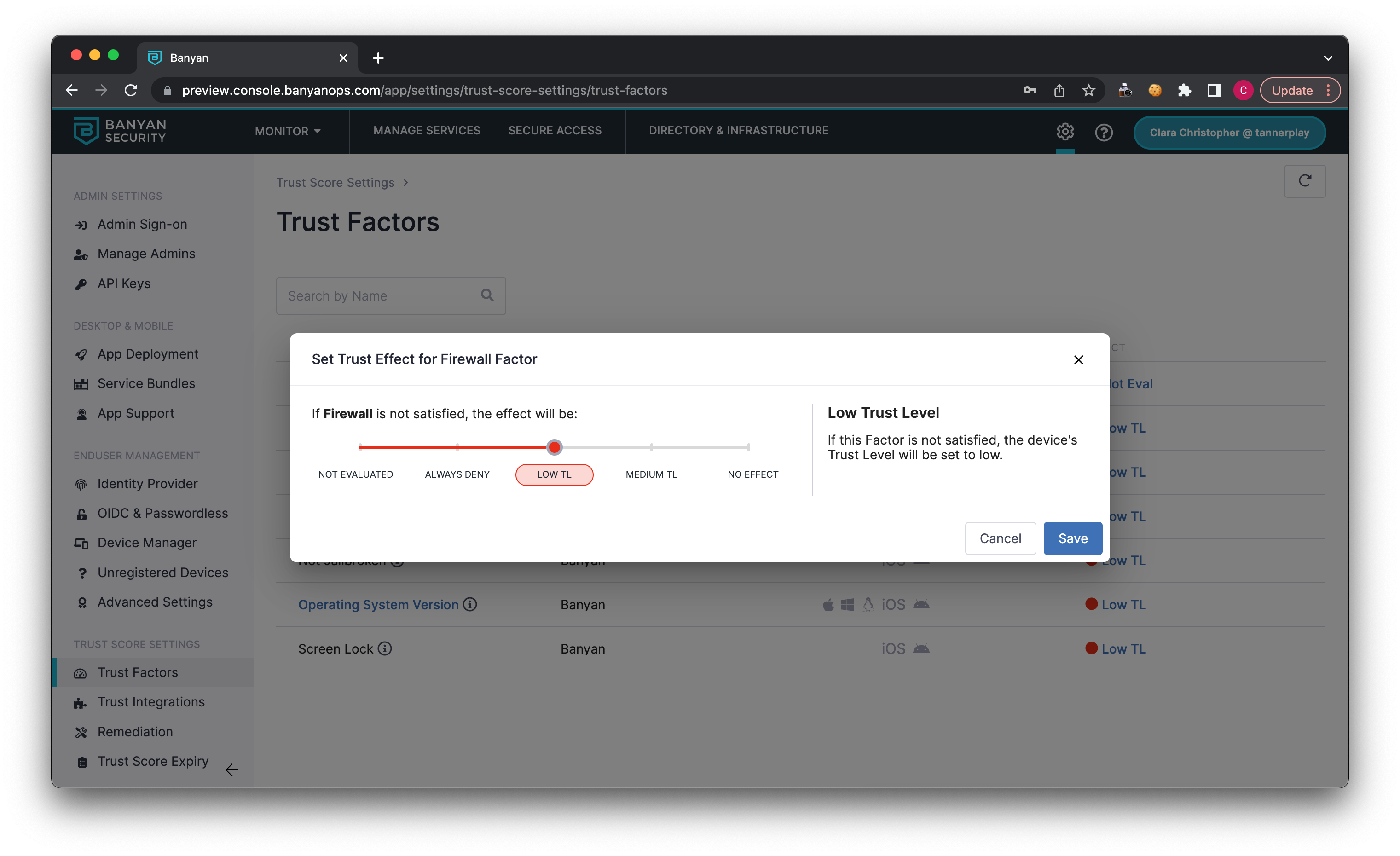 Low Trust Level: If this factor is not satisfied, the device’s Trust Level will be set to low.