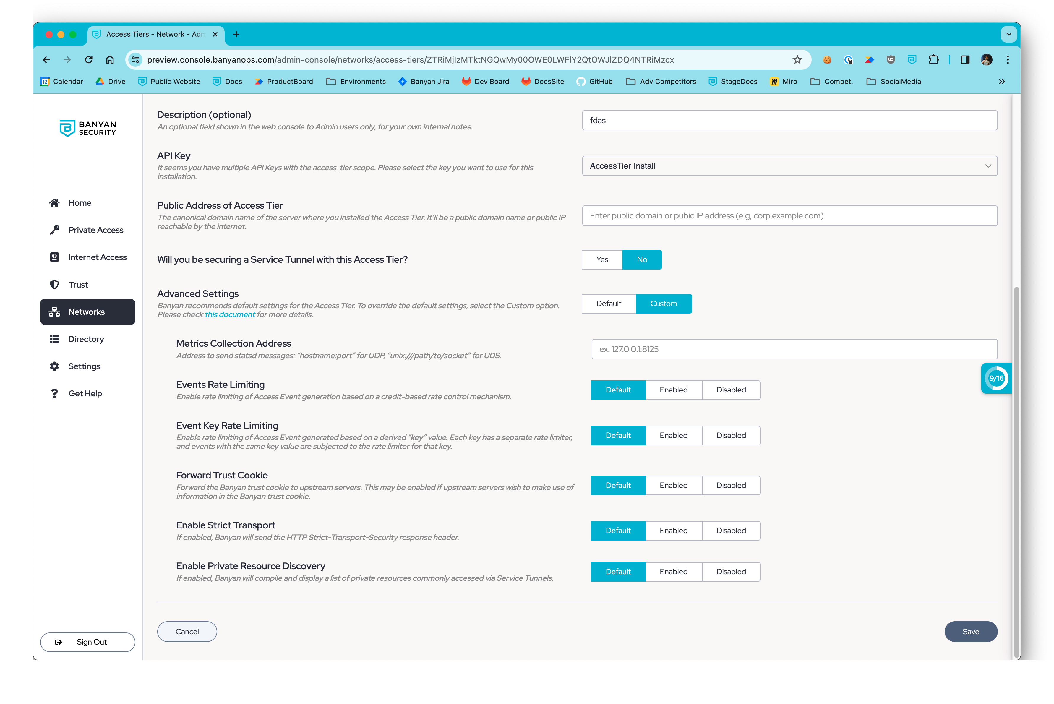 3. If creating an Access Tier, select Yes to securing a Service Tunnel with this Access Tier. Enter relevant details about your Service Tunnel.